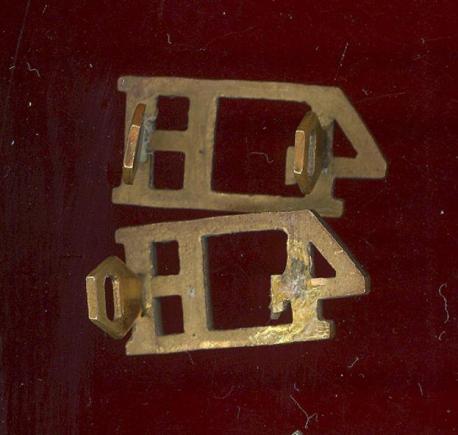 A good brass pair of pre 1958 Other Ranks shoulder titles. Two lugs (one missing off one )to the reverse of each title. GC.