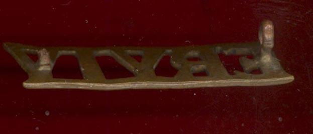 A good scarce brass shoulder title worn circa 1900-1908.One of two loops to the reverse. GC