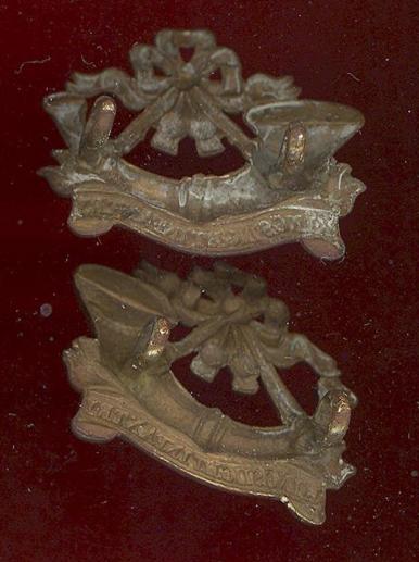 A good scarce die stamped gilded metal Other Ranks collar badges worn 1881-1882 only. Two loops to the reverse of each.Very tarnished otherwise GC. Churchill 1417