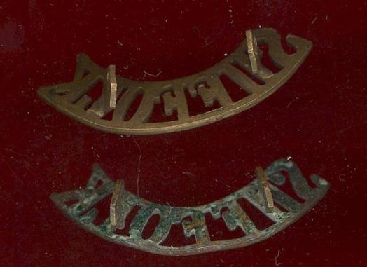 A good brass pair of shoulder titles . Two hex type lugs with back plates and pins to the reverse. GC.