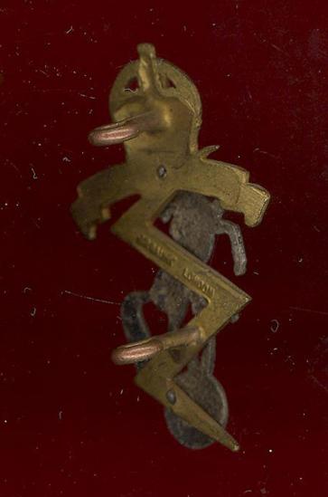 A good die stamped gilt with silvered horse and globe overlay cap badge . Two loops North/South to the reverse . Makers stamp J.R.Gaunt, London. VGC.
