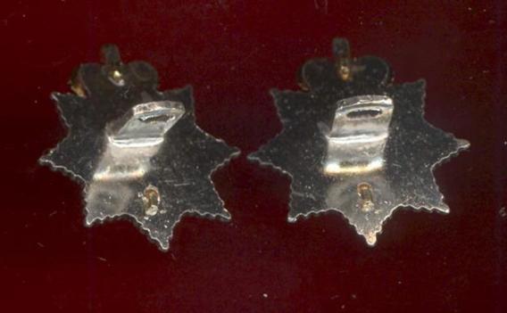 A good modern die cast silvered with gilt overlays facing pair of collar badges. Single lugs to the reverse. VGC.