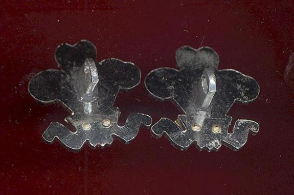A good anodised aluminium pair of other ranks collar badges. Single lugs to the reverse. GC