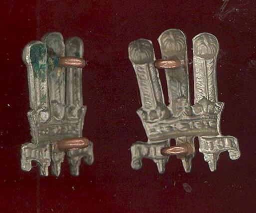 A good scarce die stamped white metal Prince of Wales's feathers . Two loops each to the reverse. VGC.