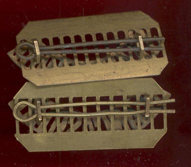 A good pair of post 1902 brass shoulder titles.Two hex type lugs with brass backing plates and pins to the reverse. GC.