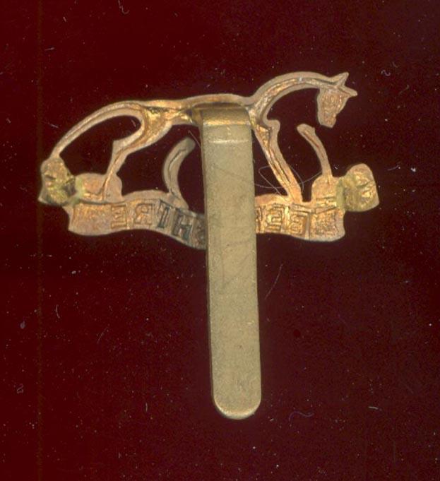A good scarce small size die stamped brass Uffington Horse on "Berkshire" scroll. Slider to the reverse. VGC.