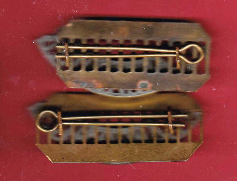 A good scarce pre 1908 pair of white metal shoulder titles. Two hex type lugs to the reverse. Worn with seperate '1 / 2' and 'V' above. VGC.