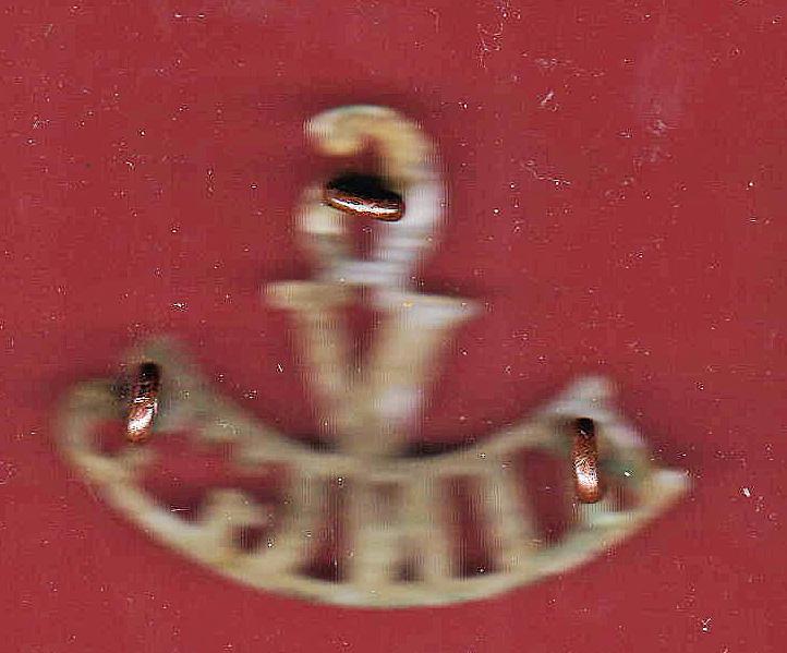 A fine scarce post 1881 white metal shoulder title to the 6th Volunteer Battalion, The King's Liverpool Regiment. Three loops to the reverse. VGC.