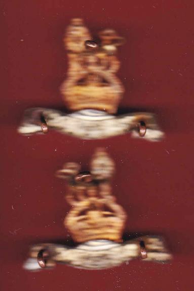 A fine scarce post 1922 King's crown large die stamped gilded metal Royal crest with white metal "Merebimur" scroll below facing pair . Three loops to the reverse of each collar. VGC.
