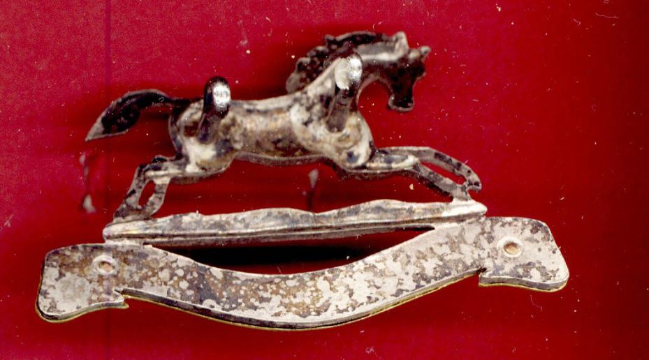 A fine and scarce post 1958 example die cast silver horse with gilt title scroll. Two loops to the reverse.VGC