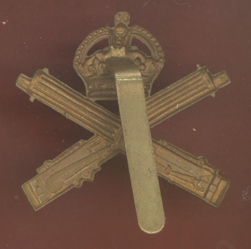 A fine die stamped brass metal example . Crowned crossed Vickers machine guns . Slider to the reverse. VGC.