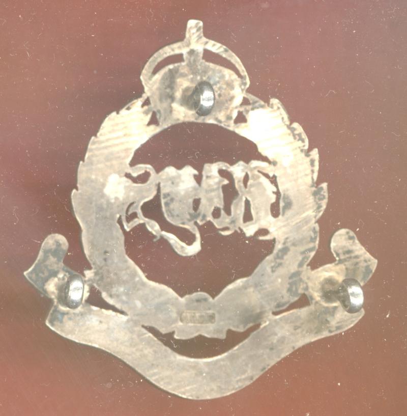 A fine scarce post WW1 circa 1920 die cast unmarked silver example possibly made in India . Three loops to the reverse. Makers stamp M.HOS. VGC. Linaker & Dine 6.5 Bays A