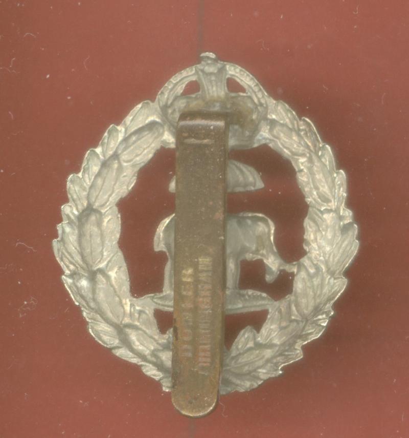 A super scarce British made post 1902 die stamped white metal example. Small slider to the reverse. Makers stamp Dowler, Birmingham. VGC. Renfrews 1752
