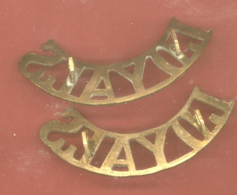 A good post 1920 brass pair of shoulder titles. Two lugs to the reverse of each title. VGC