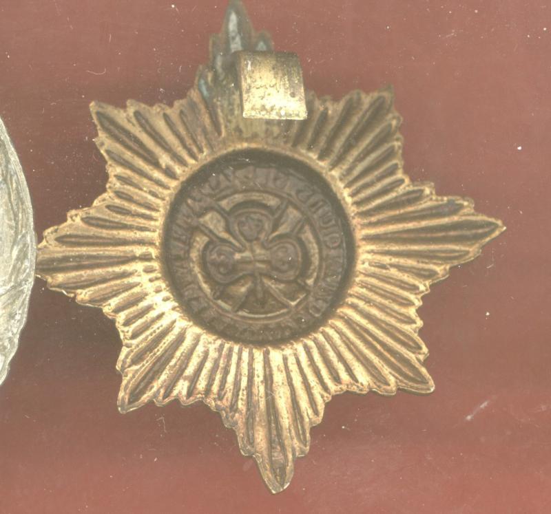 A good vintage die stamped brass example with large shamrock. Clipped slider to the reverse. GC