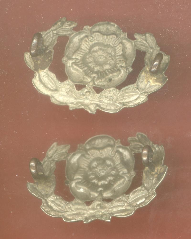 A good early matching pair of die stamped white metal other ranks collar badges . Two loops to the reverse of each. VGC.