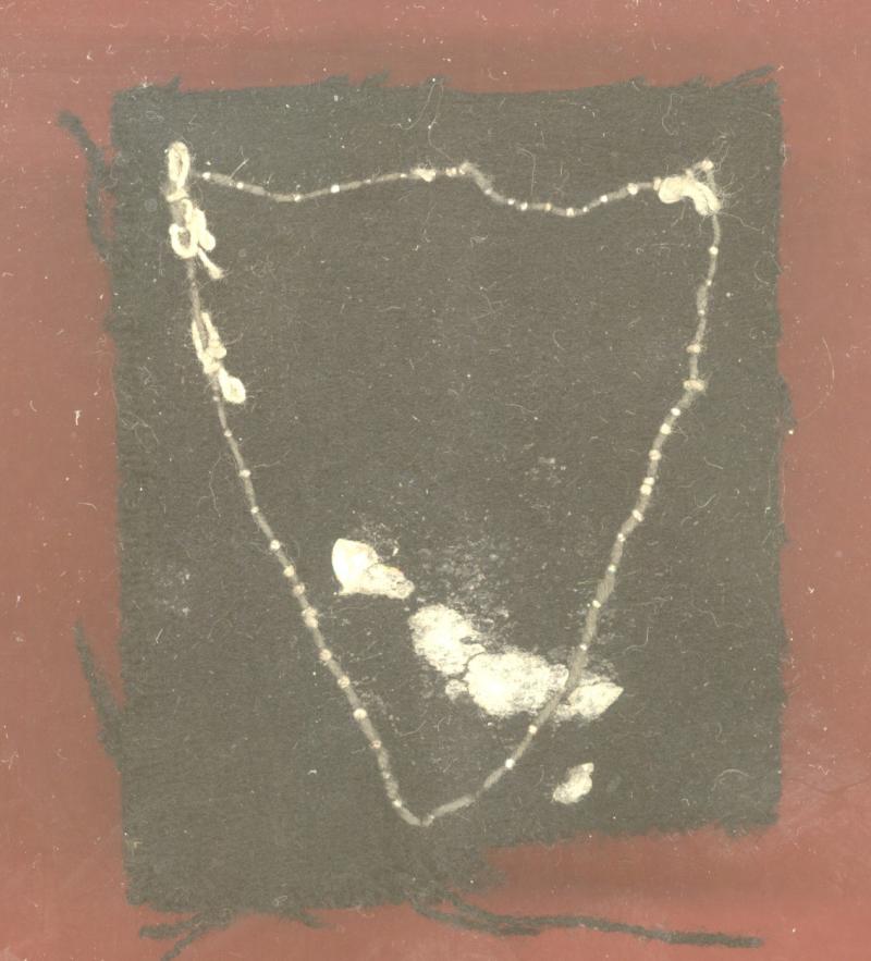 A good early embroidered yellow cross with blue border on a white shield on a black felt square. GC