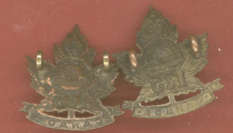 A good scarce die stamped copper bronze pair of collar badges. Two loops to the reverse of each collar. One slightly darker. GC. Cox 697 for cap badge.