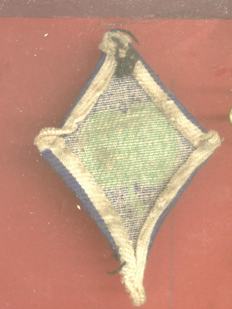 A good scarce printed 1st pattern green apple on blue diamond. Removed from uniform. GC.