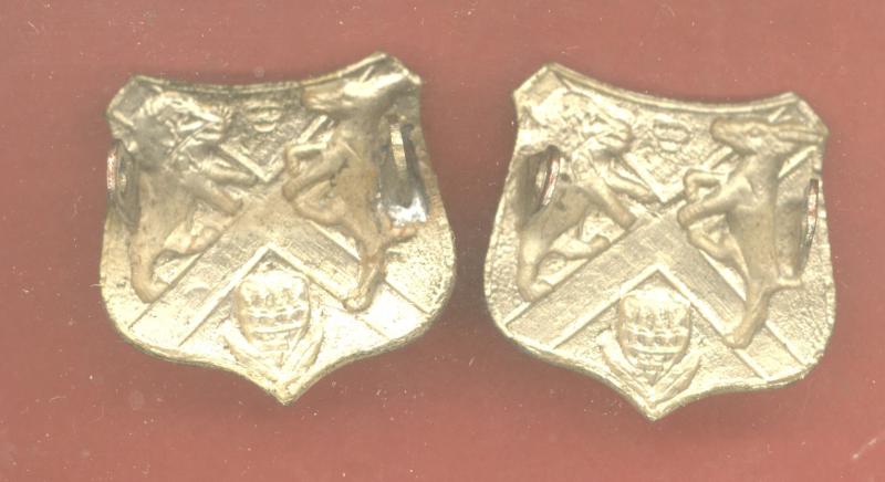 A good scarce die stamped white metal pair of collar badges worn circa 1940-43. Two flat type lugs each to the reverse. VGC. Owen 686