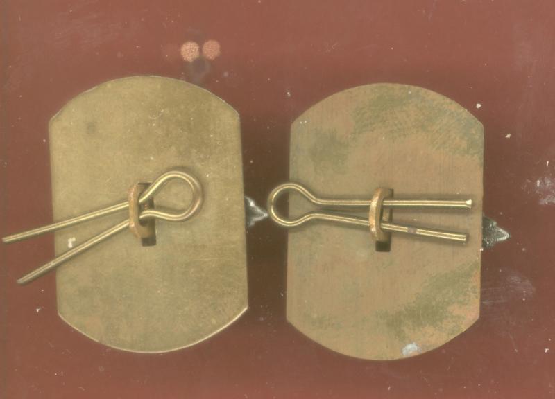 A good scarce post WW2 die stamped white metal pair of other ranks collar badges. Single lug to the reverse of each. VGC.