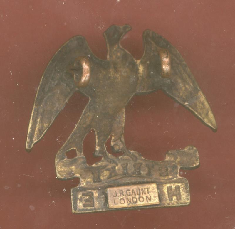 A fine scarce Royal Naval Division other ranks die stamped brass metal example worn circa 1916-18. A Hawk with outspread wings upon the motto scroll, " Strike " and the title tablet, " Hawke"..Two loops to the reverse. Makers tablet J.R.Gaunt, London. VGC.