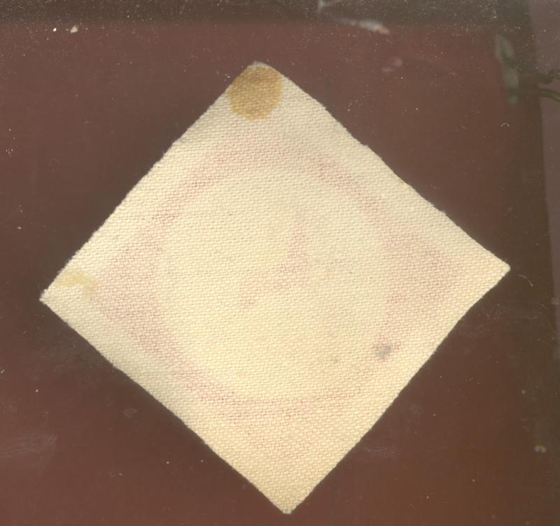 A good scarce printed red gazelle on a white disc on a red diamond with a white border and narrow red lined border. GC. Similar to sign worn by 13th Corps