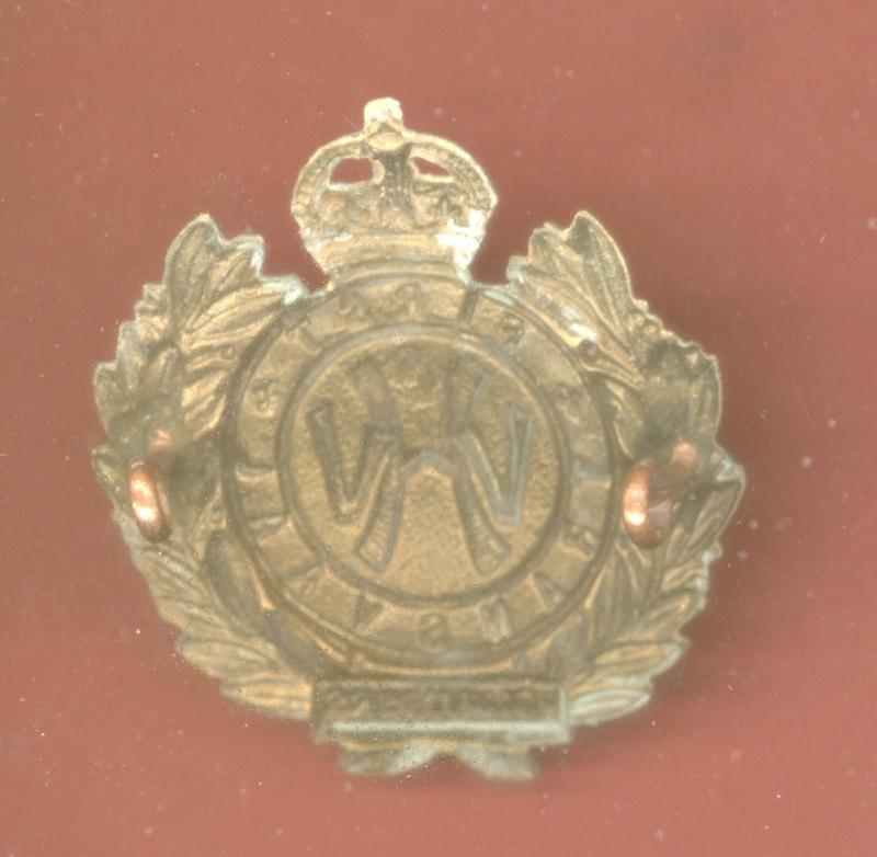 A fine scarce die-stamped gilded metal example. Crowned strap FIRST TRANSVAAL on VOLUNTEERS tablet, attendant laurel sprays, cypher to solid centre. Two toned loops to the reverse. VGC Owen 580
