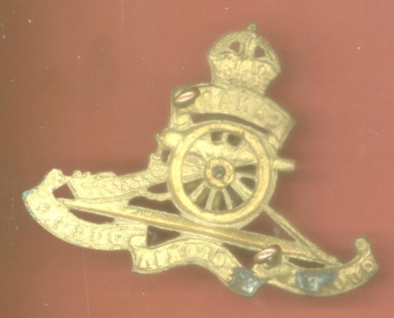 A good scarce die stamped brass example with "Canada" top scroll. Applied wheel. Two loops to the reverse. VGC