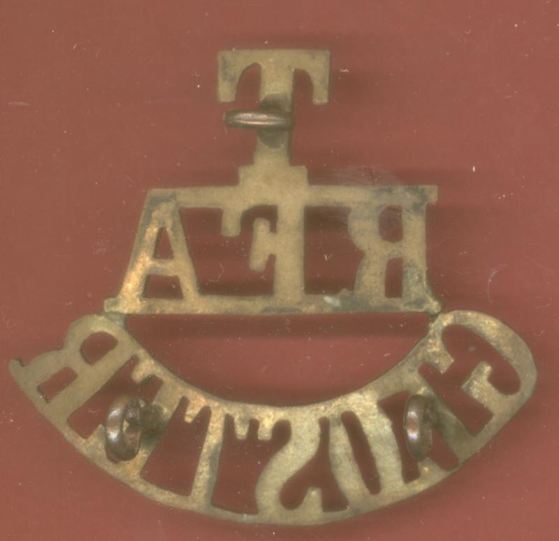 A good scarce Territorial Royal Field Artillery , Gloucestershire brass example. Three lugs to the reverse. VGC. Westlake 631