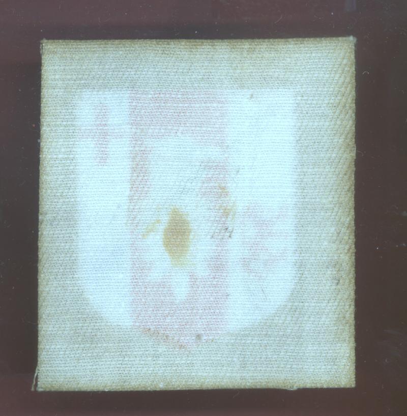 A good scarce printed white shield with central red bar, white eagle's head pick out in black, red cross in top right corner and red lion in bottom left corner with black arrow diagonally across the shield all on a khaki square.