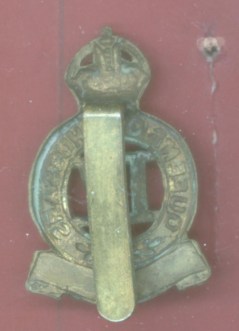 A good scarce die stamped bi-metal large pattern cap badge worn post 1906. Slider to the reverse. GC.