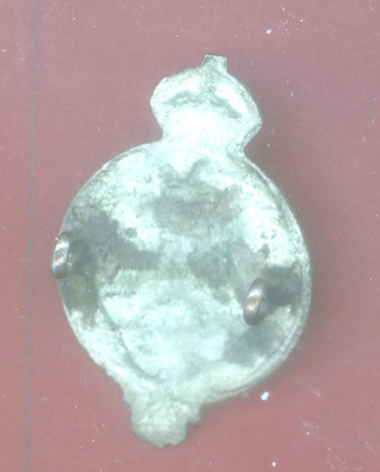 A good scarce die stamped white metal example. Two loops to the reverse. GC.