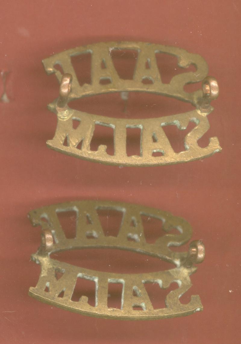 A good post 1923 die cast brass pair of shoulder titles. Two loops to the reverse of each. GC. Owen 2104