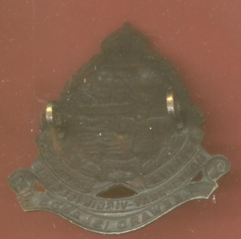 A super scarce die stamped blackened metal example. Crowned laurel sprays with ocean scene to solid centre, title scrolls below. Two flat type brass loops to the reverse. VGC. Renfrews & Cranston 43
