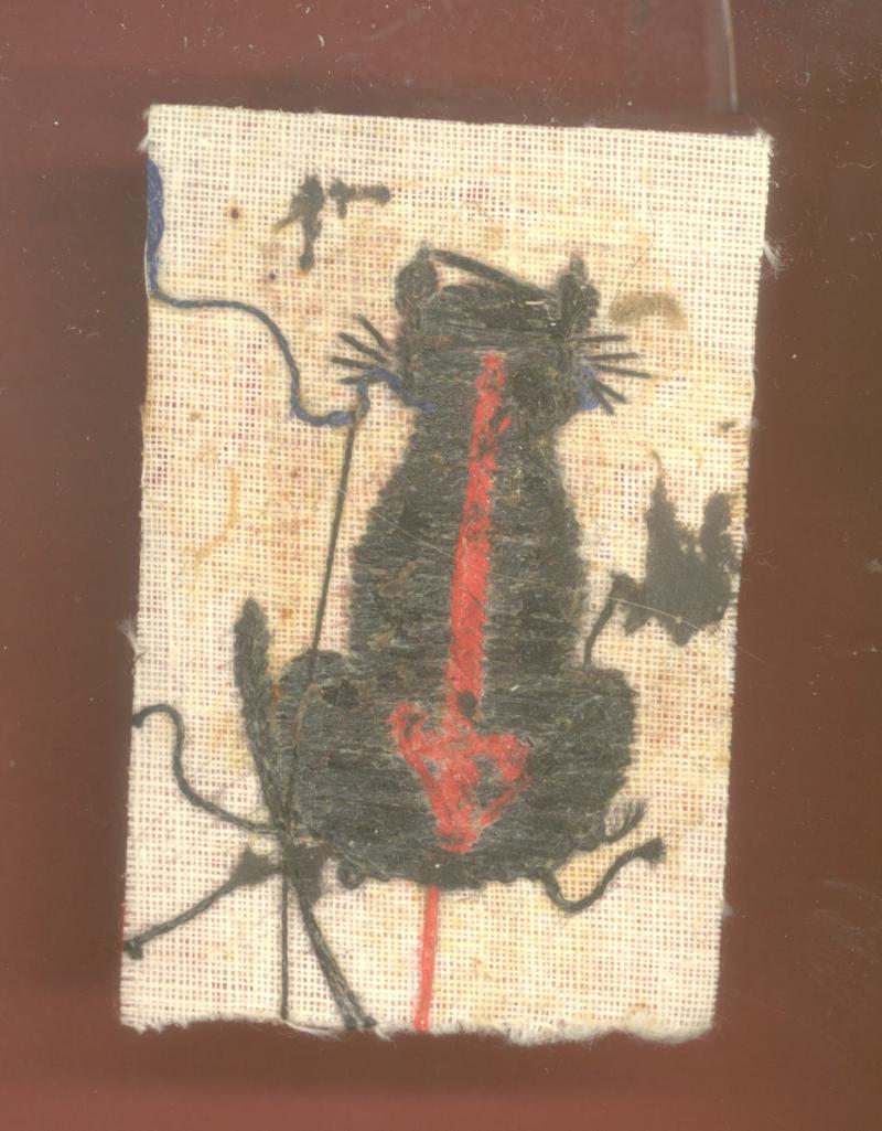 A good 2nd pattern embroidered red sword on a black cat on a red rectangle. Removed from uniform. VGC