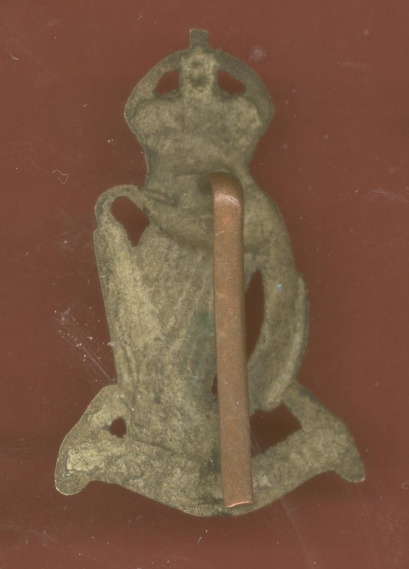 A fine scarce large die cast brass example worn circa 1940-53. Crowned Harp with scroll inscribed ' FAUGH A BALLAGH'. Crude copper slider to the reverse. VGC As Owen 637