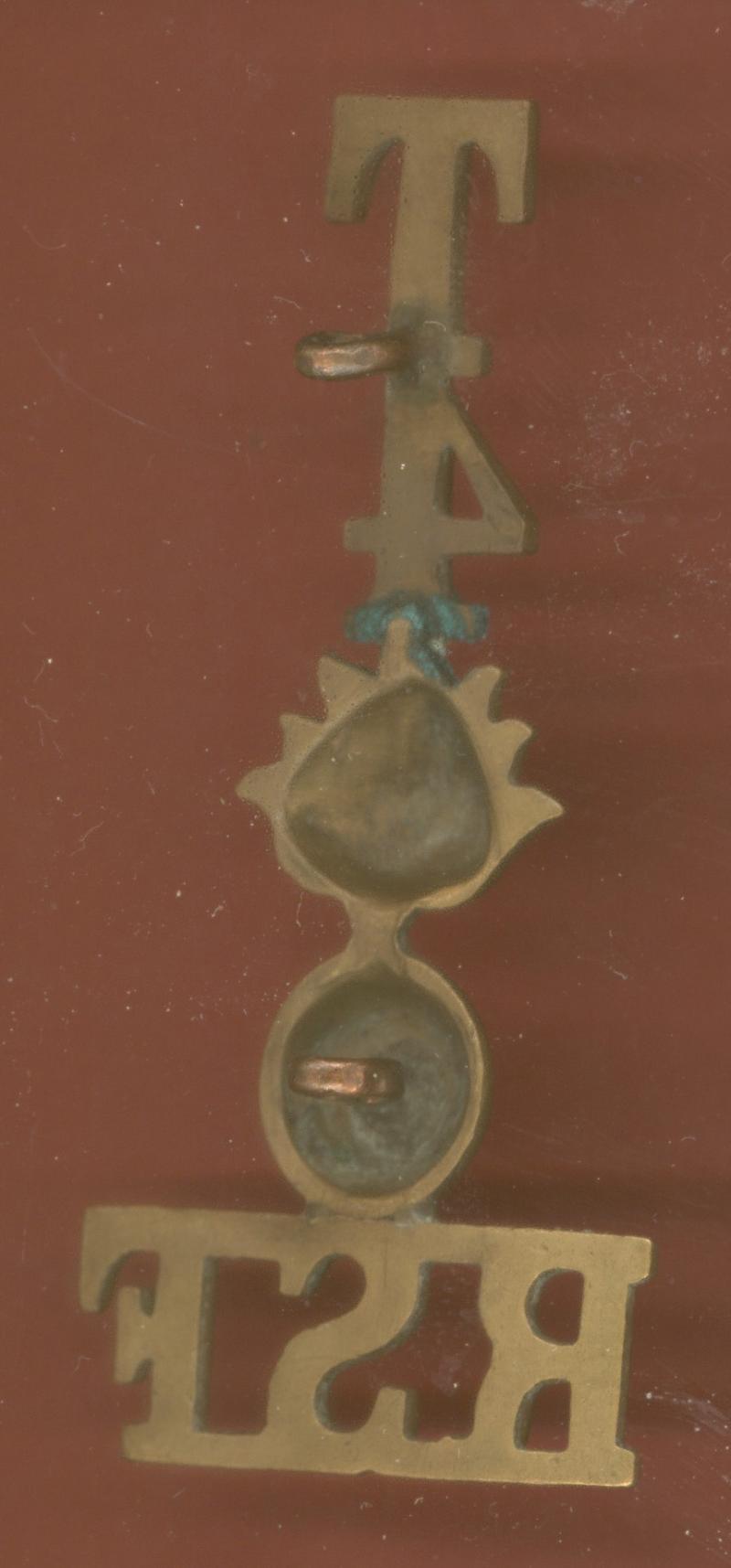 A good scarce one peice brass title to the 4th Territorial battalion ,The Royal Scots Fusiliers. Two loops to the reverse. VGC. Westlake 950...