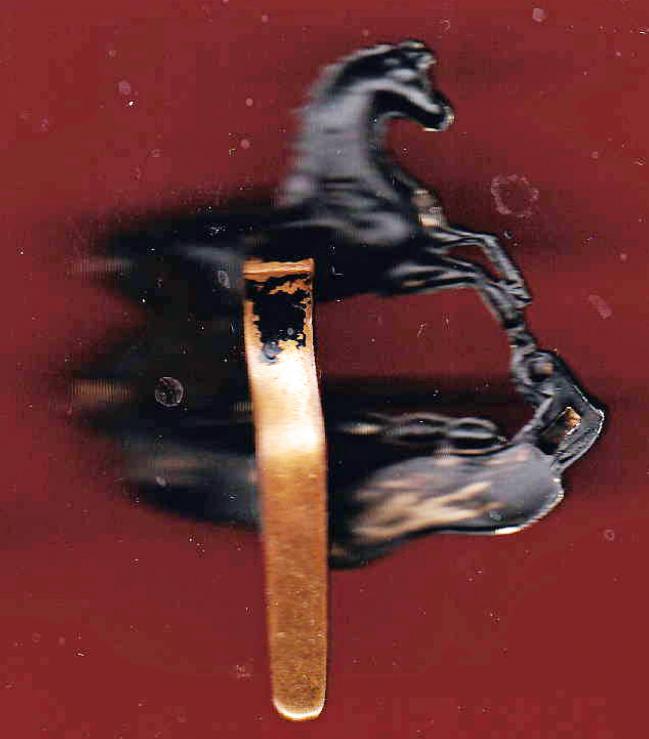 A good post 1926 die stamped blackened metal example. Slider to the reverse. GC