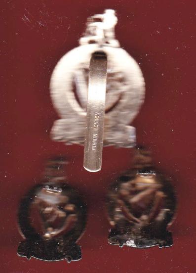 A good post 1958 2nd pattern gold and silver anodised aluminium cap and collar badge set. Slider and single lugs to the reverse. VGC. Firmin, London.