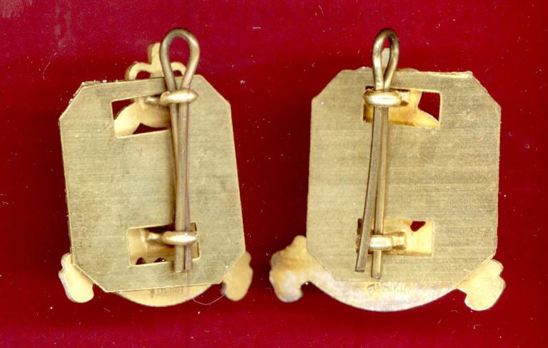 A good post 1992 die cast gilt with silver wash to title scroll facing pair. Two loops to the reverse of each. Makers stamp to both Firmin. VGC..
