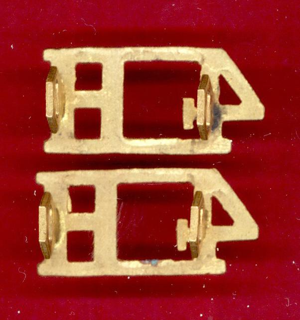 A good brass pair of pre 1958 Other Ranks shoulder titles. Two hex type lugs to the reverse of each title. VGC.