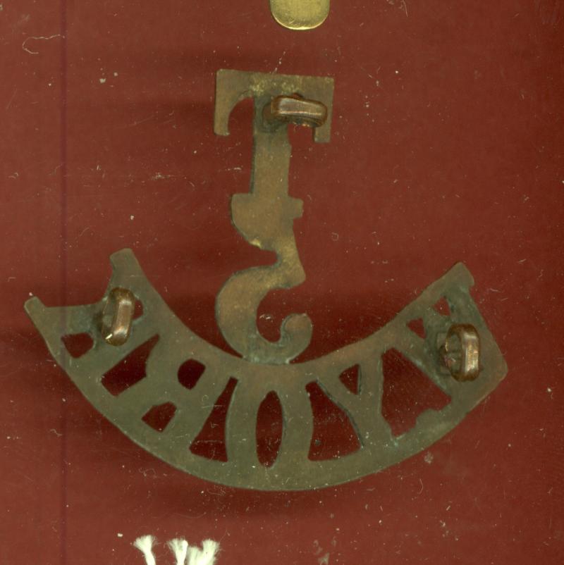 A good scarce brass title to the 5th Territorial battalion ,The West Yorkshire Regiment . Three loops to the reverse. VGC. Westlake 883