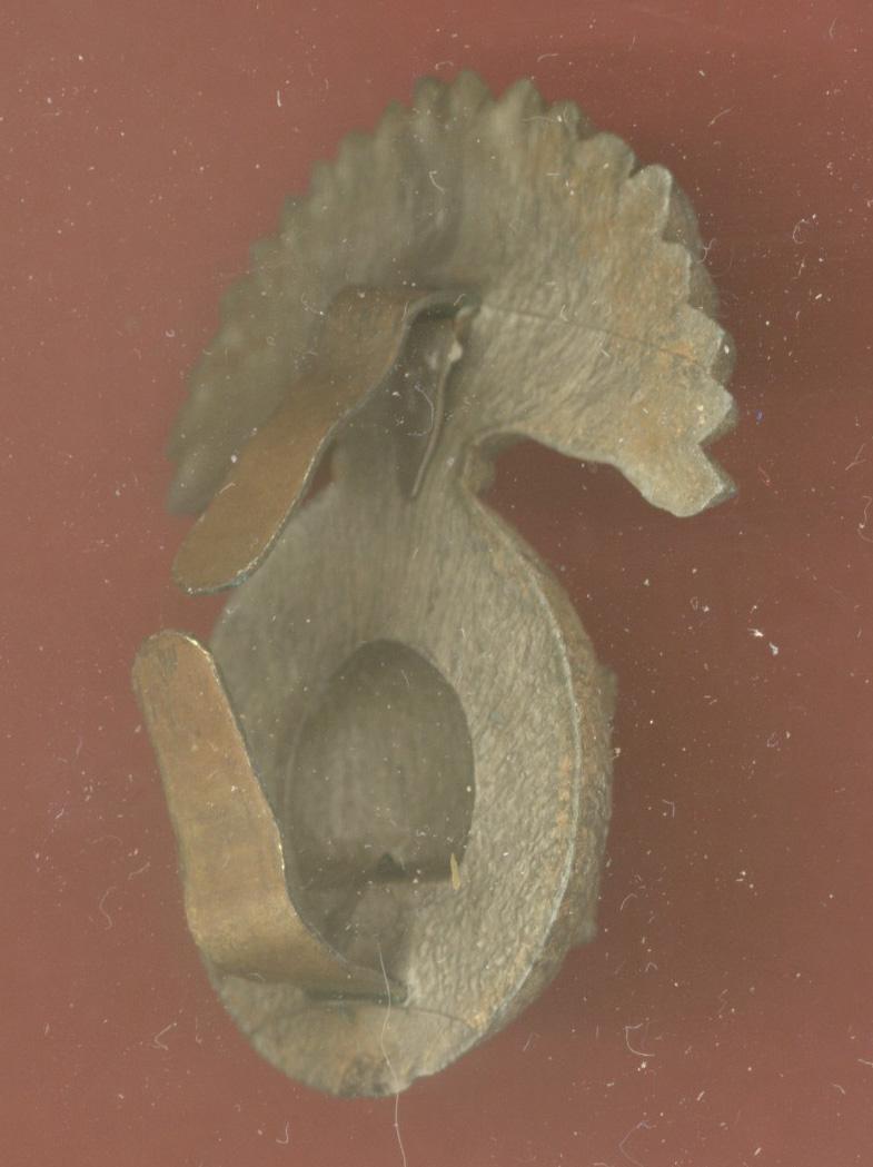 A fine scarce light grey moulded plastic example.The Castle of Inniskilling to the ball of a fused grenade. Two blades to the reverse. VGC.