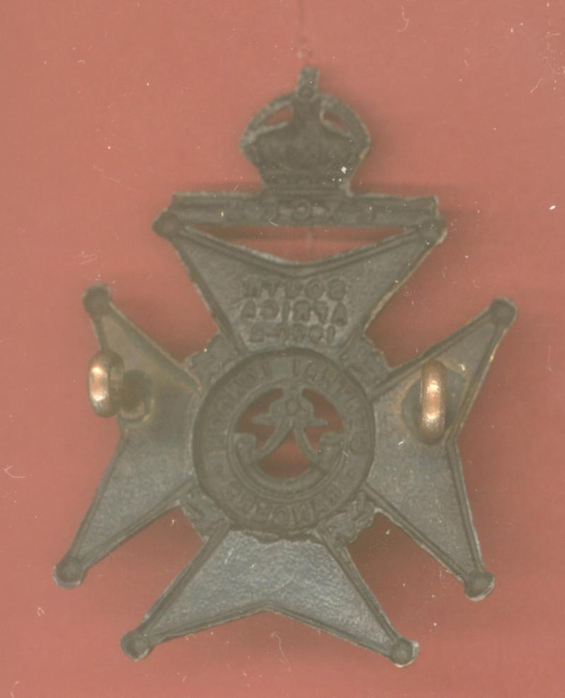 A super scarce die stamped blackened brass example worn circa 1905-08 only. Two loops to the reverse.