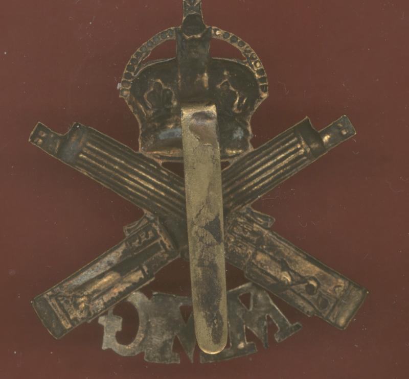A fine scarce die stamped bi metal example. Crowned crossed Vickers machine guns with 'MMG' across the butts. Slider to the reverse. VGC.