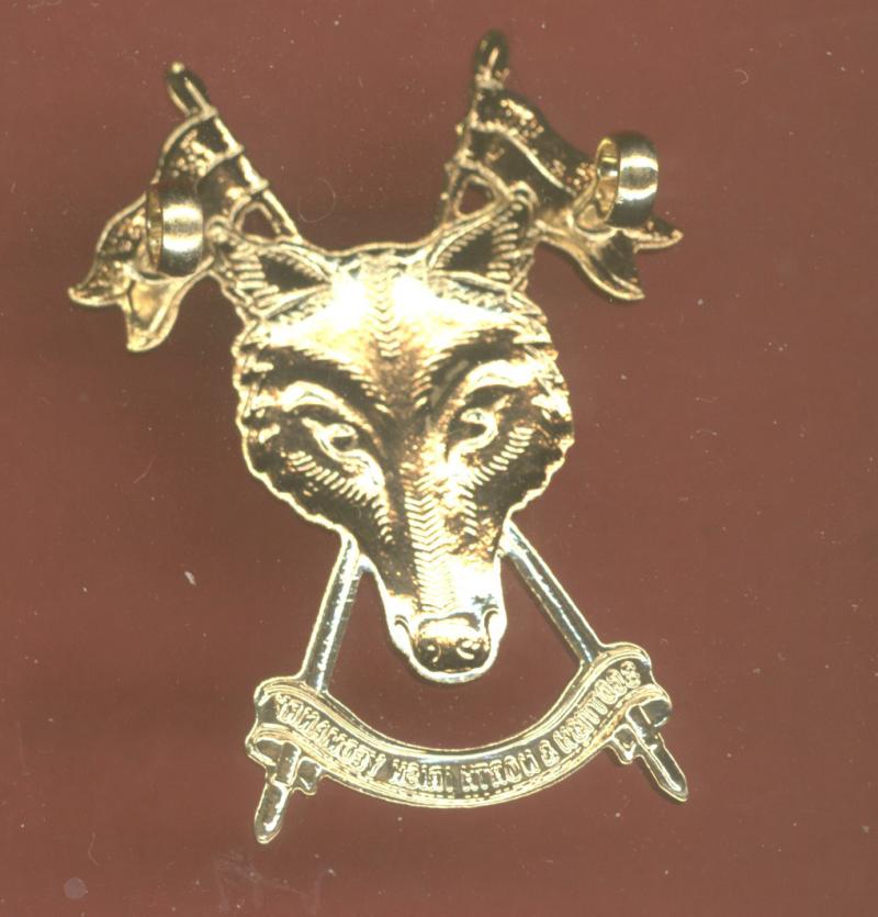 A good post 2014 1st issue Other Ranks beret badge. Die stamped silvered wolf face set upon gilt crossed lances ,gilt title scroll across the lance butts. Two loops to the reverse. VGC.