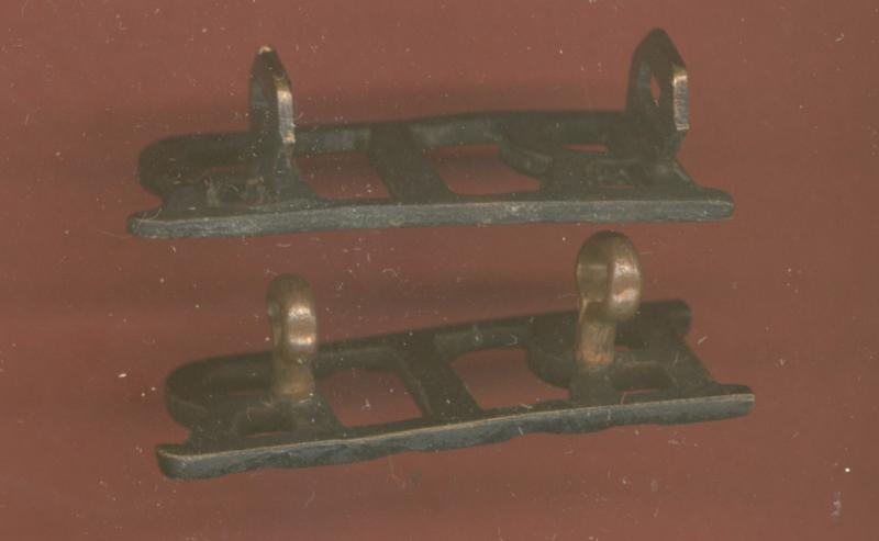 A good early blackened brass pair of shoulder titles worn pre 1920. Two lugs each to the reverse. VGC. Westlake 1392