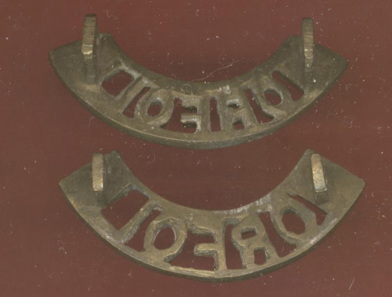 A fine scarce Indian made pair of brass officer's shoulder titles worn in India circa 1935. Two integral lugs to the reverse of each title. VGC Westlake 834