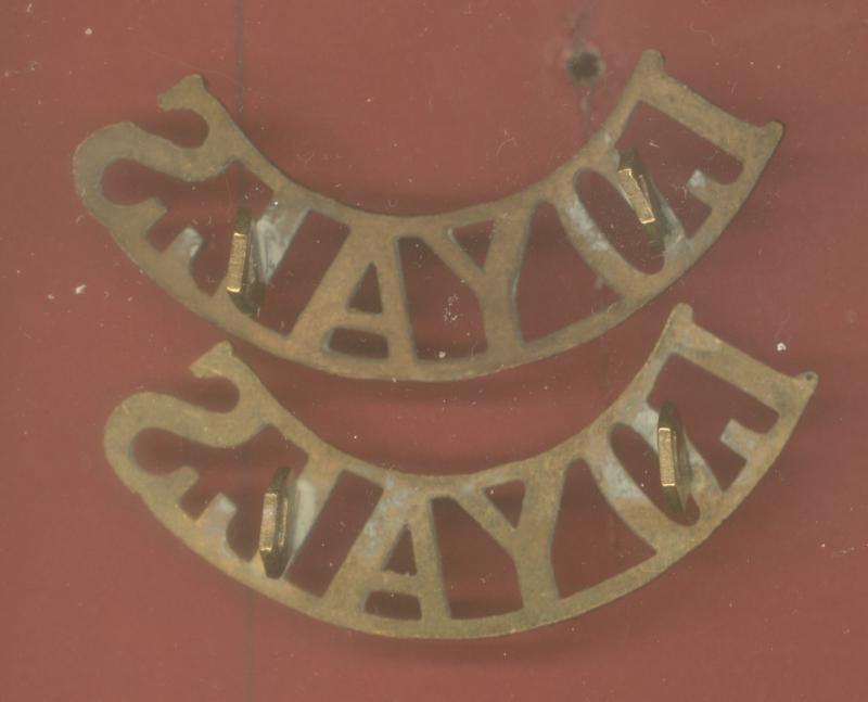 A good post 1920 brass pair of shoulder titles. Two lugs to the reverse of each title. VGC